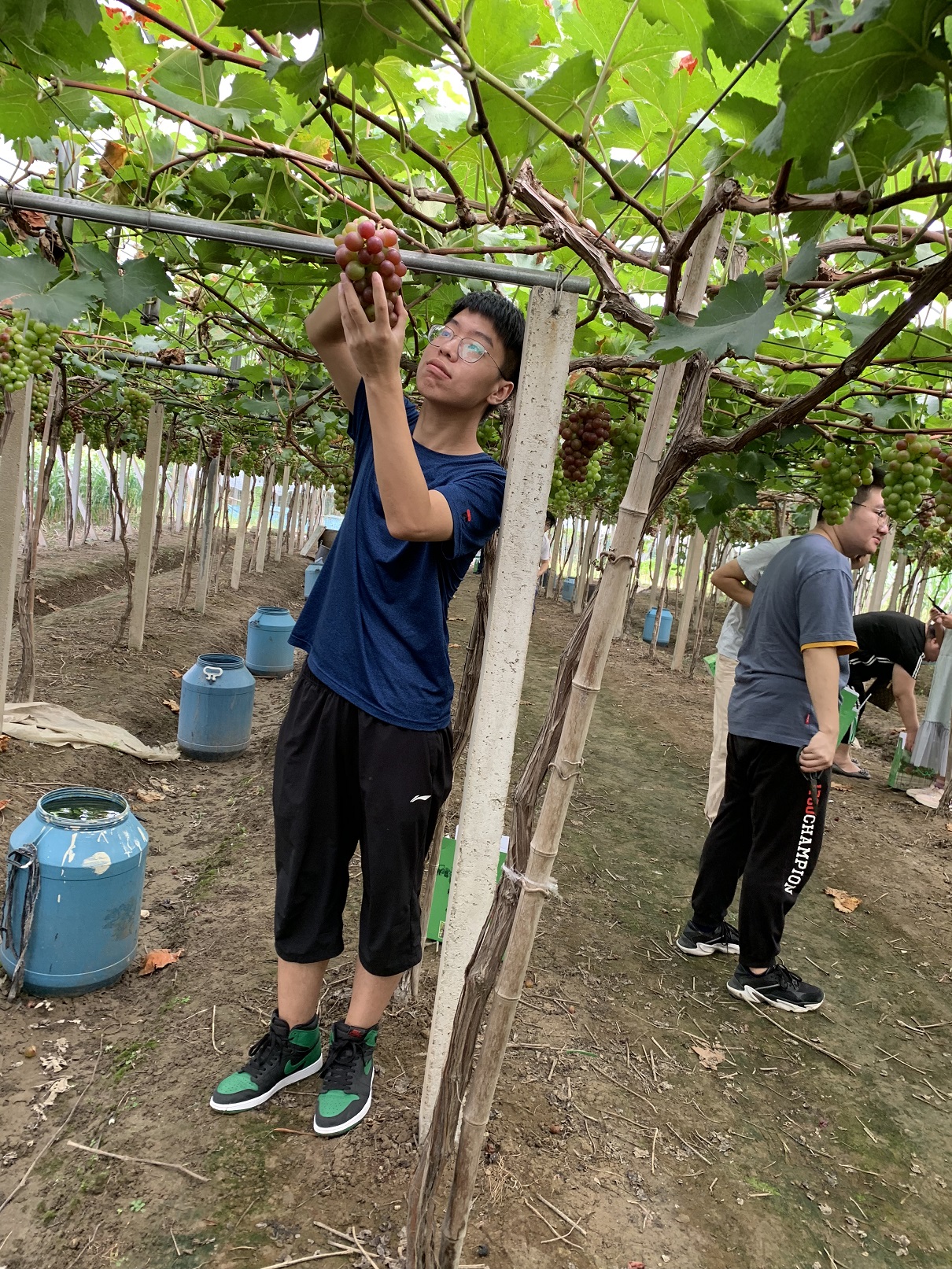 來到葡萄園,看著一串串青的、紫的顆粒碩大的葡萄,沉甸甸地掛在枝藤上,透著喜人的光,大家都迫不及待地開始了跟它們的親密接觸。提箱子,轉動剪刀,剪下一串串晶瑩剔透的葡萄,品嘗這個季節獨屬的甜蜜。大家在歡聲笑語中體驗采摘的樂趣,員工們邊摘邊吃,品嘗著不同品種的美味。最后,每位員工都采到了自己精心挑選的葡萄,滿載而歸。