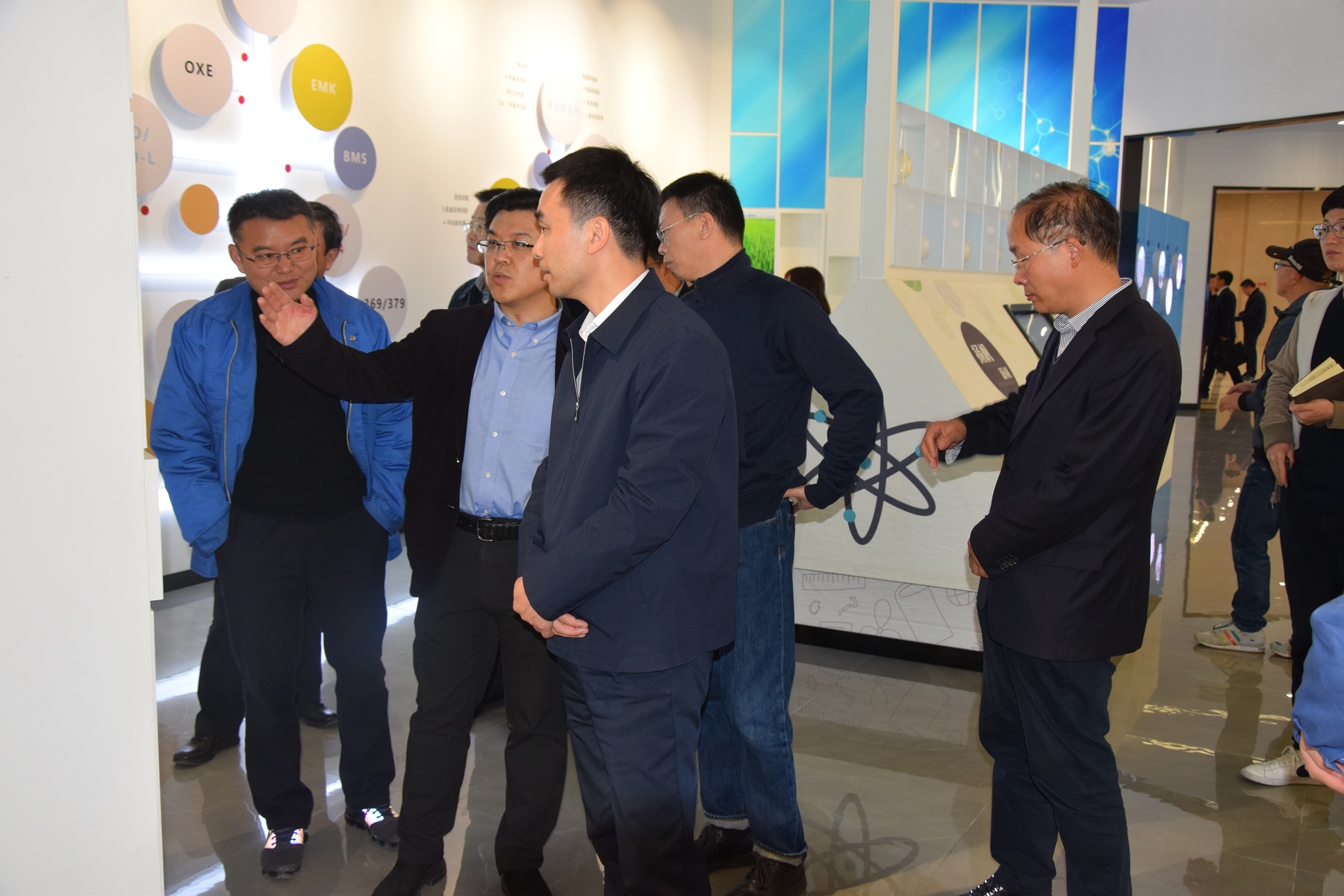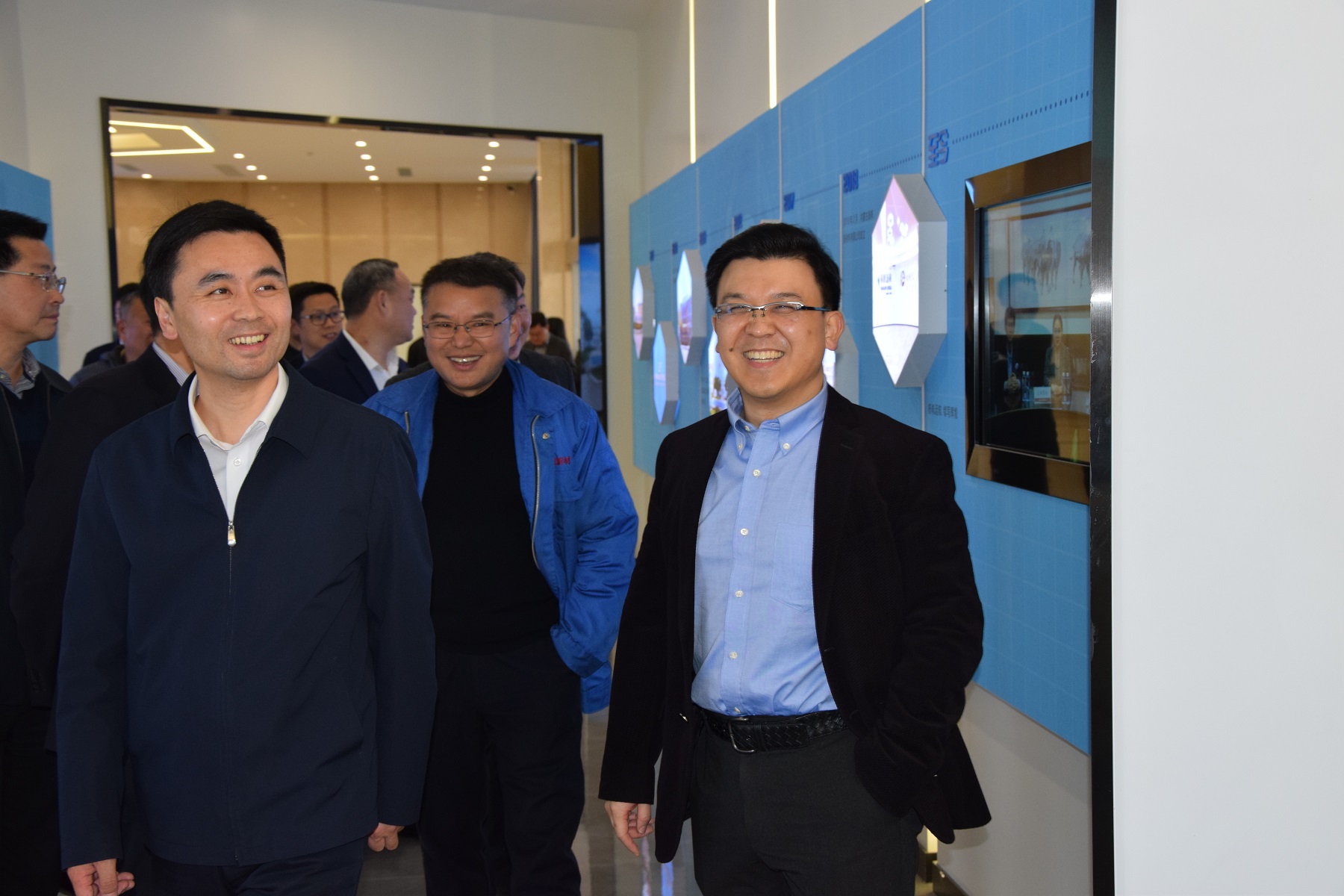 金區(qū)長一行在樊董的陪同下參觀了企業(yè)發(fā)展(產(chǎn)品)展示廳和黨建展廳。