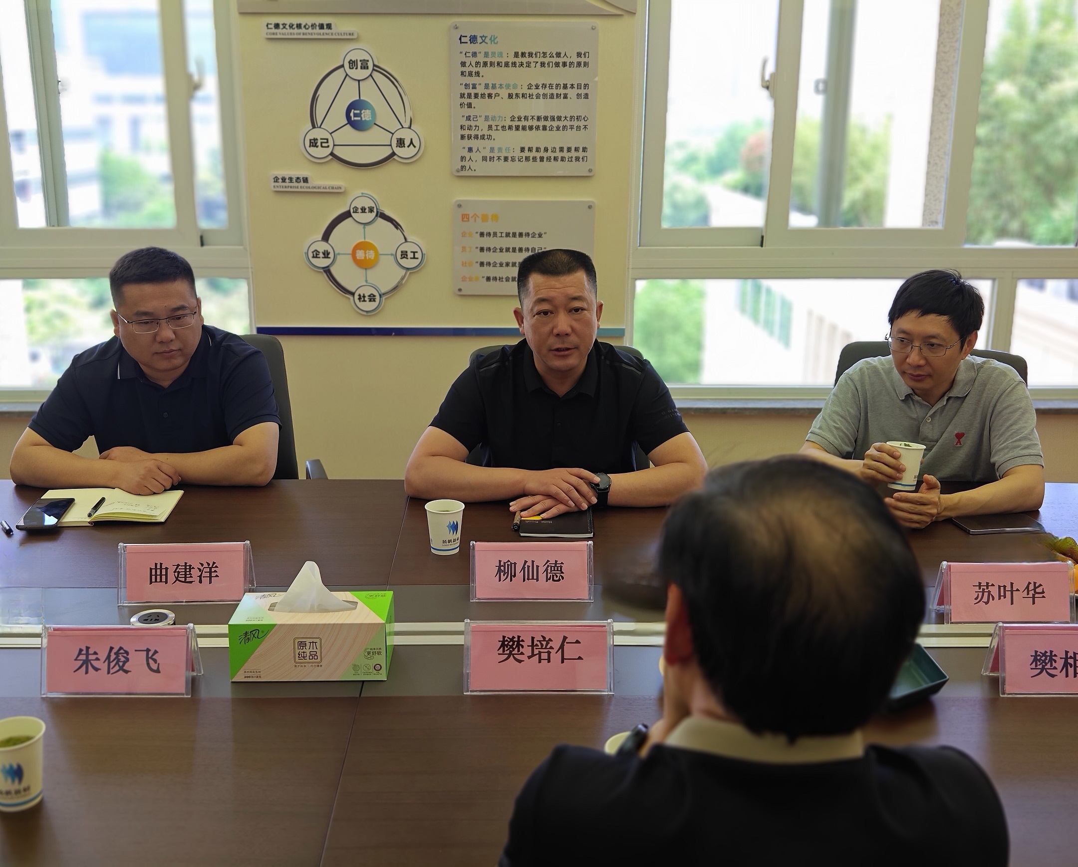 高新區投資促進局局長曲建洋、內蒙古世杰化工總經理蘇葉華參加走訪調研。公司副總裁朱俊飛,副總裁、董事會秘書樊相東,財務總監上官云明參與座談。